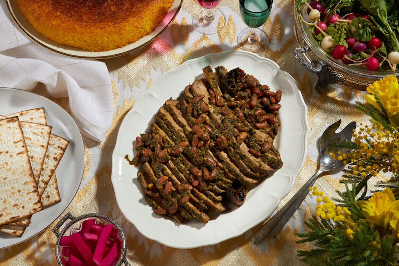 Finally, by 2019, Jake was not only ready to welcome both sides of the family to the table, but to blend them. He prepared ghormeh sabzi from Alex’s tradition, but with a brisket, nodding to his own family. Jake adds: “It’s just the perfect representation of this crazy Jewish family my husband and I have built.”