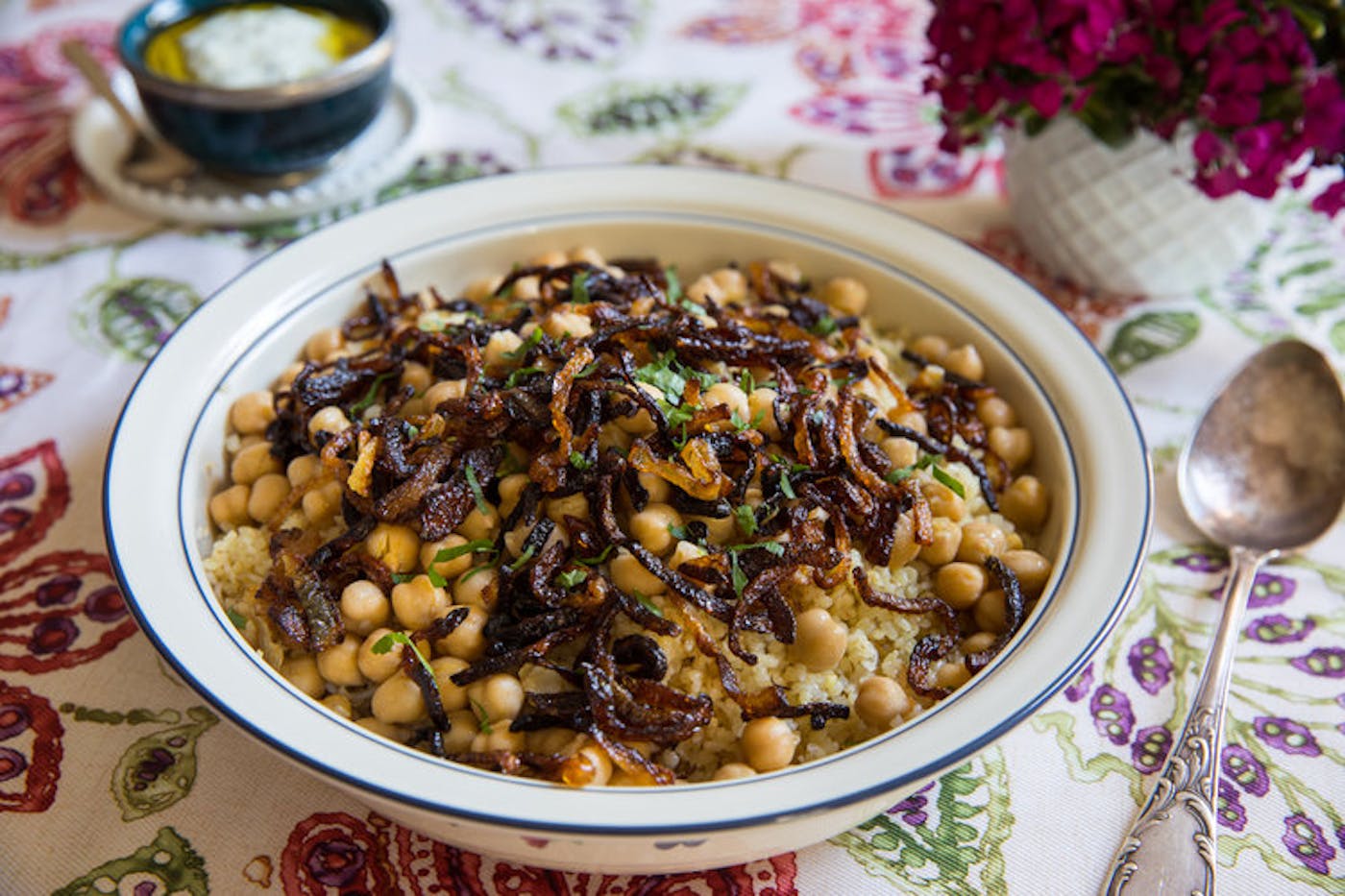 To feed the family, she would make a large pot of what the family calls bulrul, or bulgur with fried onions, vermicelli, and chickpeas. “It’s similar to that one pot meal that Italian grandmas would make, it never runs out,” Naomi explains. In Syria, it was a dish that housewives made on laundry day, when they were too busy to prepare something else. “A typical Syrian dishes can take hours,” she adds. To flesh out the meal, Rashel would also serve a yogurt sauce made with Persian cucumbers and mint, pickles, tehina, and two salads, one with cabbage and another with tomatoes and cucumbers. And there was always baklava, drenched in a sweet rosewater syrup that perfumed her kitchen.