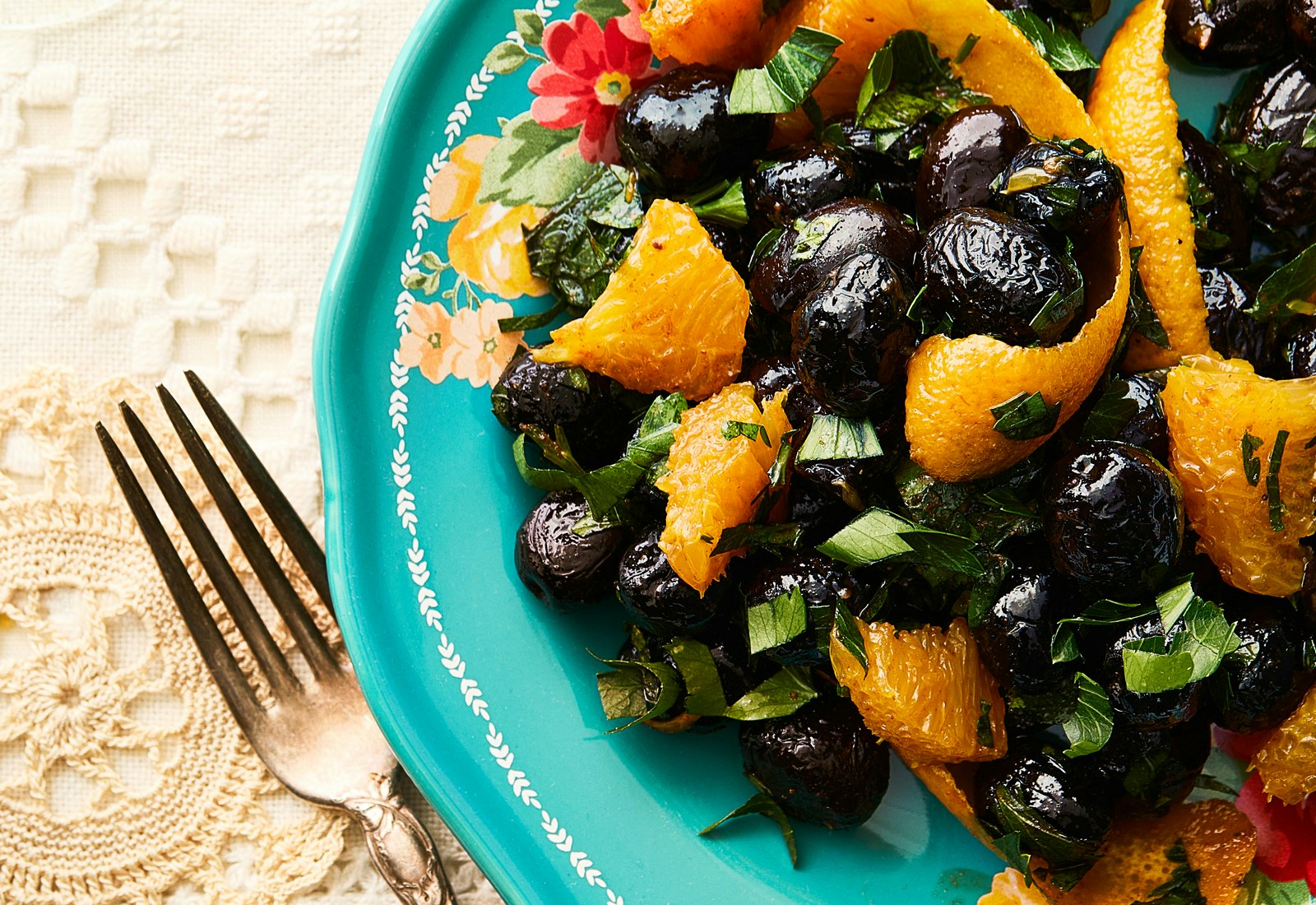 This simple yet bold Moroccan olive dish from Julia Mande and her mom Lydia Hassiba brings together salty, bitter black olives, fresh herbs, warm spices, and juicy orange for a vibrant addition to any mezze spread. It’s the kind of recipe that doesn’t need much fuss — just a shake in a jar to bring all the flavors together. The longer it sits, the better it gets, making it perfect for prepping ahead of time.