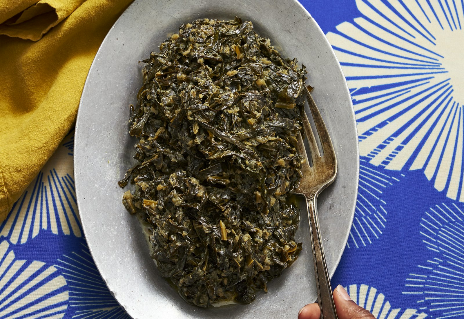 Yield: 6-8 servingsTime: 1 h 20 minGomen (Collard Greens with Garlic and Ginger)