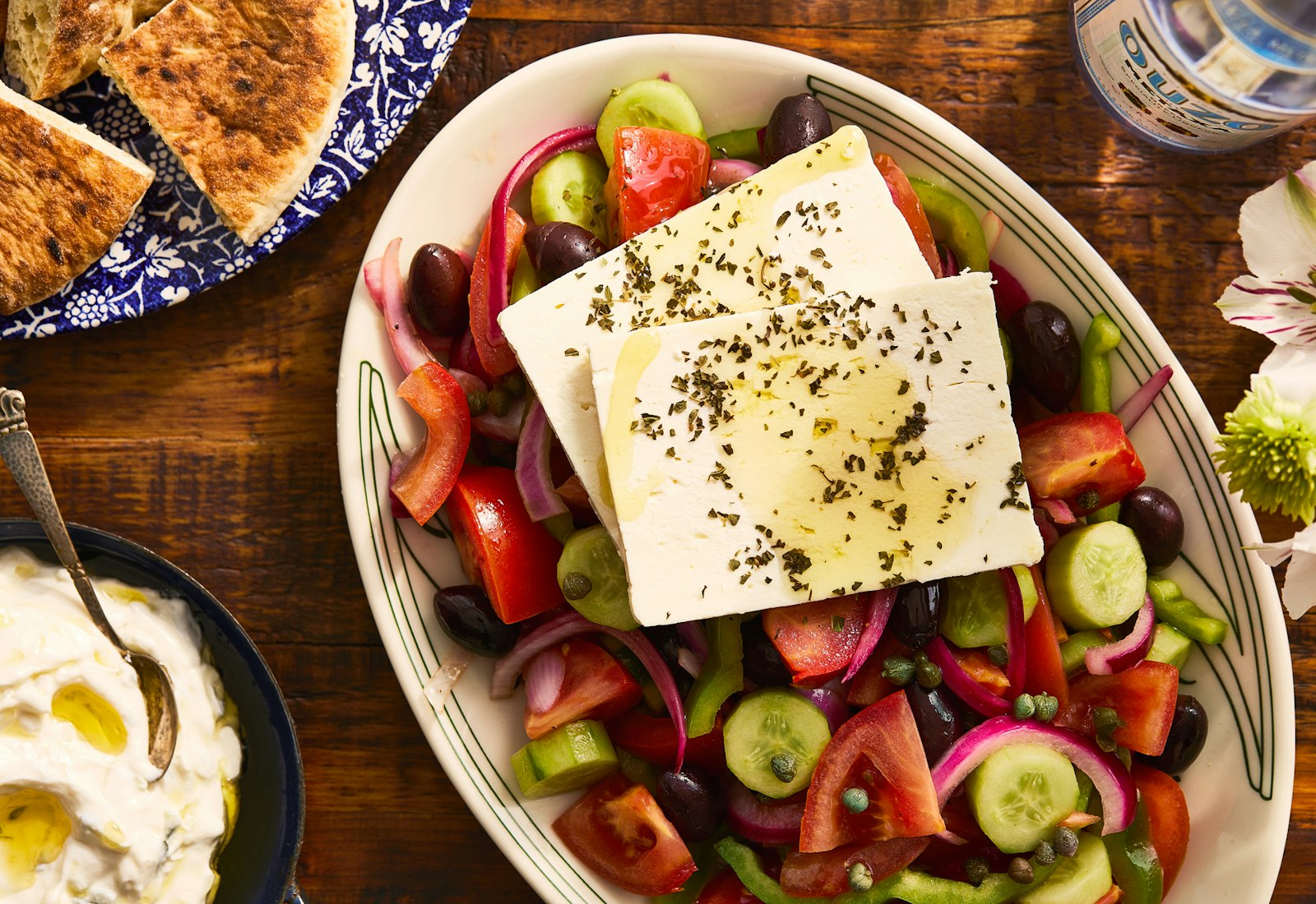 This classic Greek salad, known as horiatiki salata, is a staple on Shaily Lipa’s Shabbat breakfast table — a celebration of bold, briny flavors and peak-season vegetables. As Shaily shares in her cookbook “Yassou: The Simple, Seasonal Mediterranean Cooking of Greece,” feta wasn’t commonly added to Greek salads until the 1960s, but today a thick slab of creamy feta tops hers, along with capers, a sprinkle of oregano, and a drizzle of good olive oil. It’s the kind of unfussy dish that’s perfect for summer meals — simple, satisfying, and best served fresh with plenty of bread or pita to soak up the flavorful juices.