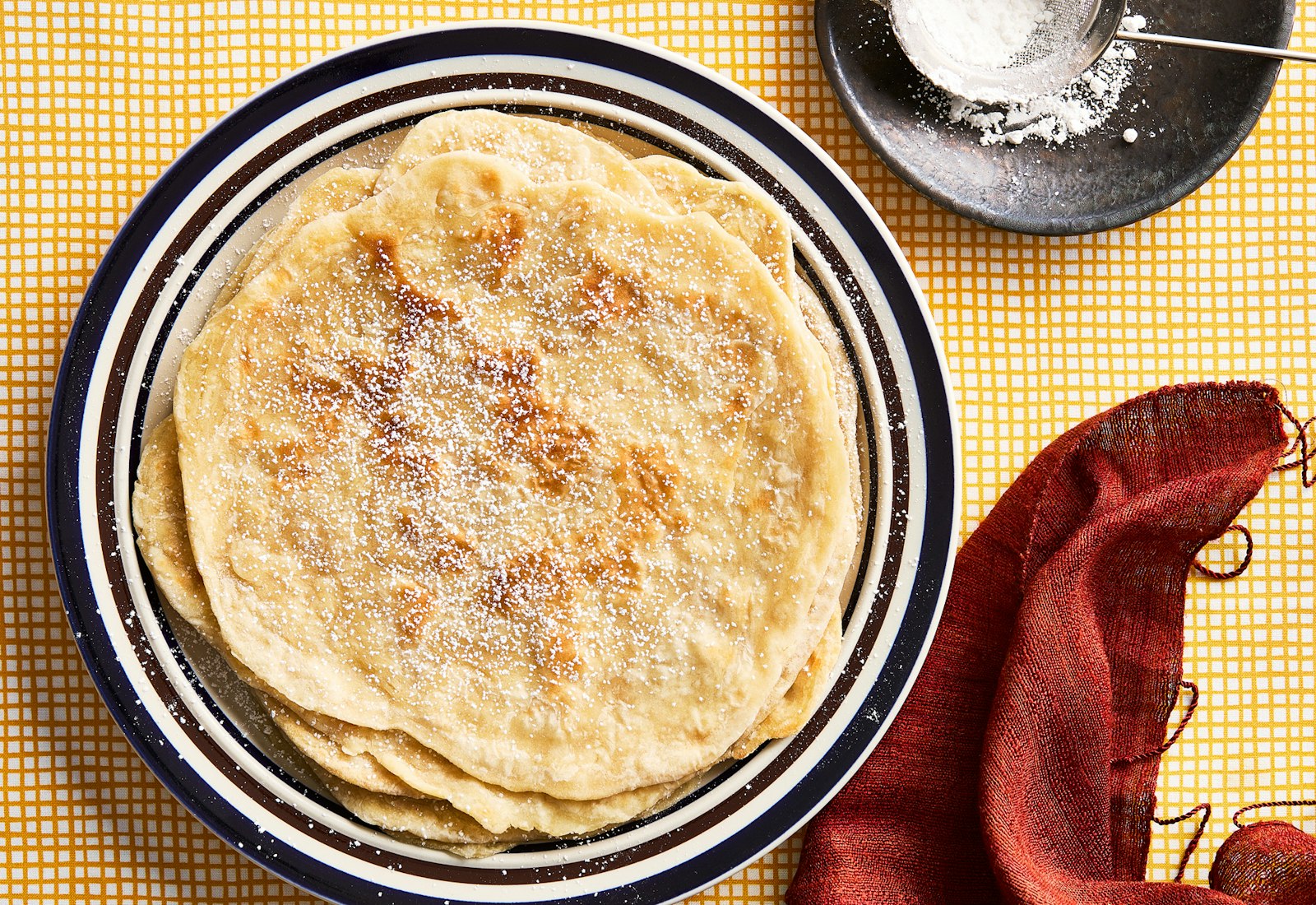 Despite its roots as a springtime harvest celebration, Shavuot is often celebrated with dairy-rich recipes like cheesecake or cheese-filled blintzes. But, in cookbook author Elana Benjamin’s Indian-Jewish community, the holiday is honored with kahi, a flaky flatbread that’s akin to an Indian paratha topped with powdered sugar.