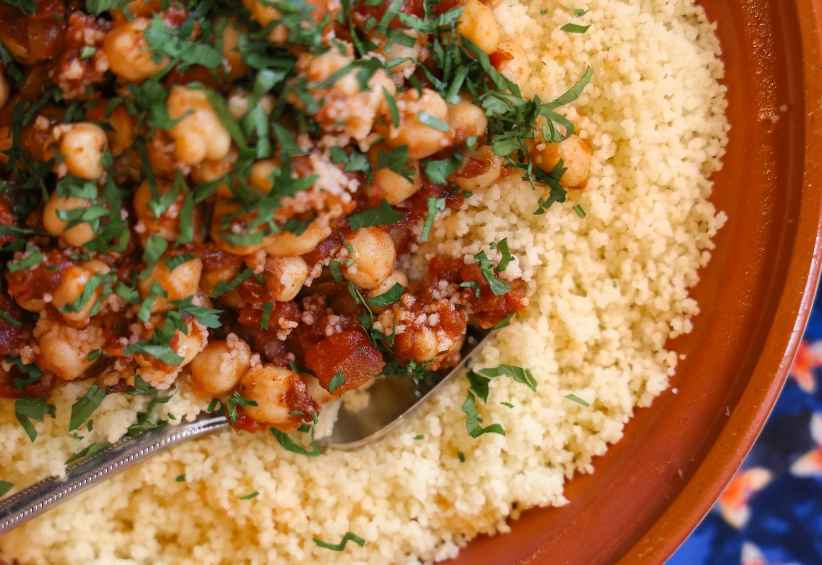 Serve couscous immediately with matbucha chickpea stew. Couscous can be stored in an airtight container in the refrigerator for up to five days.