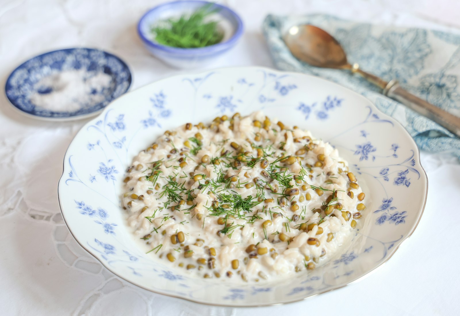 Pour the kefir sauce over the mung bean and rice mixture and stir gently until combined. Allow the mixture to come to room temperature, then chill in the refrigerator for 1 hour. The porridge can be served chilled or at room temperature. Garnish with fresh dill, if desired.