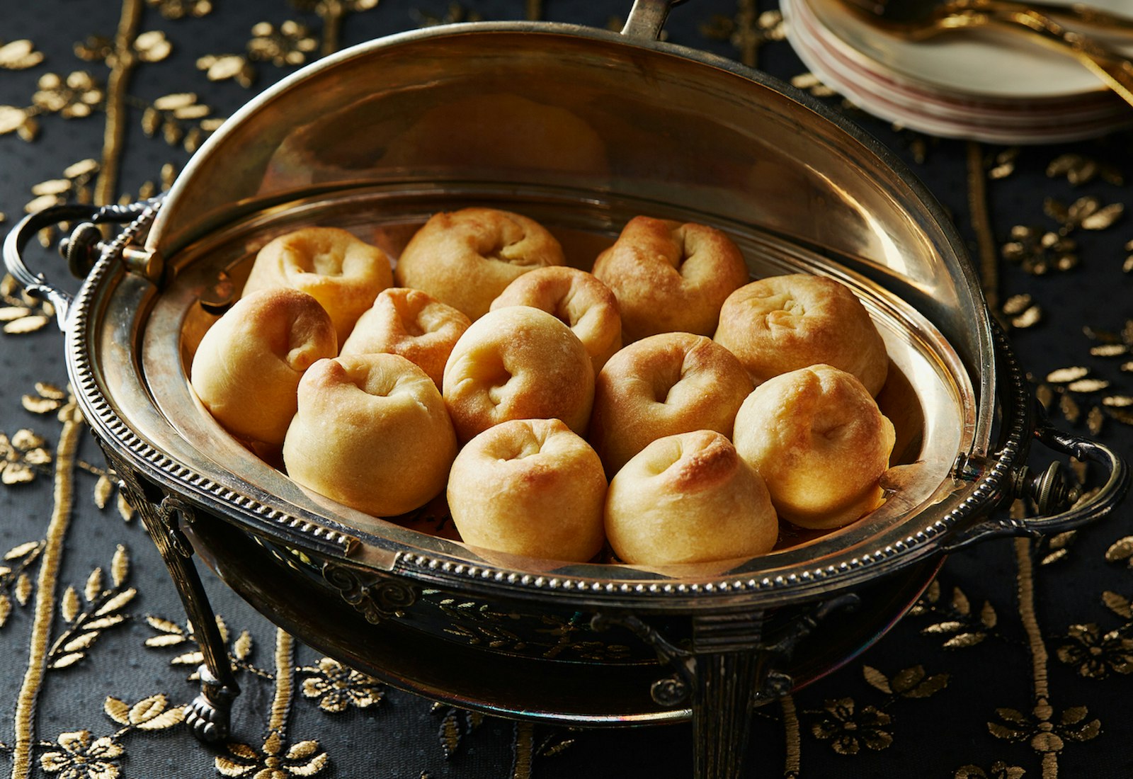 When Barbara Taranto was little, women like her grandmother Sarah and her mother Goldie would gather to make their signature potato knishes for parties and celebration. She watched her mother and other women at the local JCC roll out dough for knishes, using an unusual technique in which the dough was formed into a large ring and then broken with the heel of one’s hand. Made with a smooth, sticky dough that stretches thinly to envelop its mashed potato filling, Barbara continues to make these knishes today, baking them in Tel Aviv with her son, Isaac. But she’s never been able to stretch the dough quite as her mother does, adding that, “to me, the magic is in the hands of who makes it.”