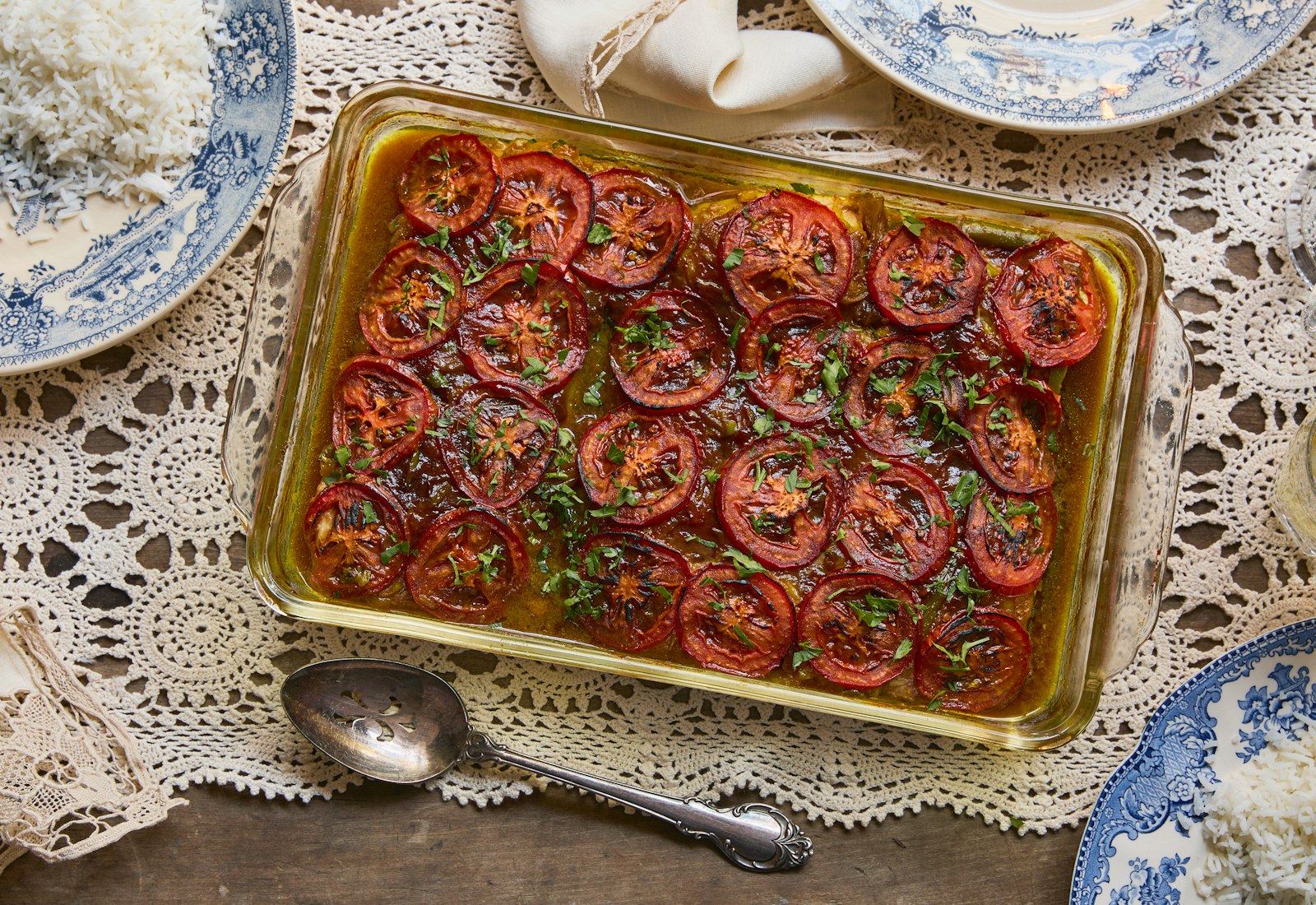 “The joy of the baked fish dish is its sauce, which is hamedh-helu (sweet and sour), the Iraqi flavor,” writes Samantha Ellis. “It’s often said it’s because of our sweet and sour history in Iraq, but not by me because not everything has to be a metaphor.” As she learned from a raucous family Whatsapp conversation, the sweet and sour flavors can come from myriad sources including pomegranate molasses and tamarind for the sour notes and sugar or even honey for the sweet. In this recipe, she uses lemons, pomegranate molasses, and date syrup to strike that balance of flavors. It’s best served alongside white rice.