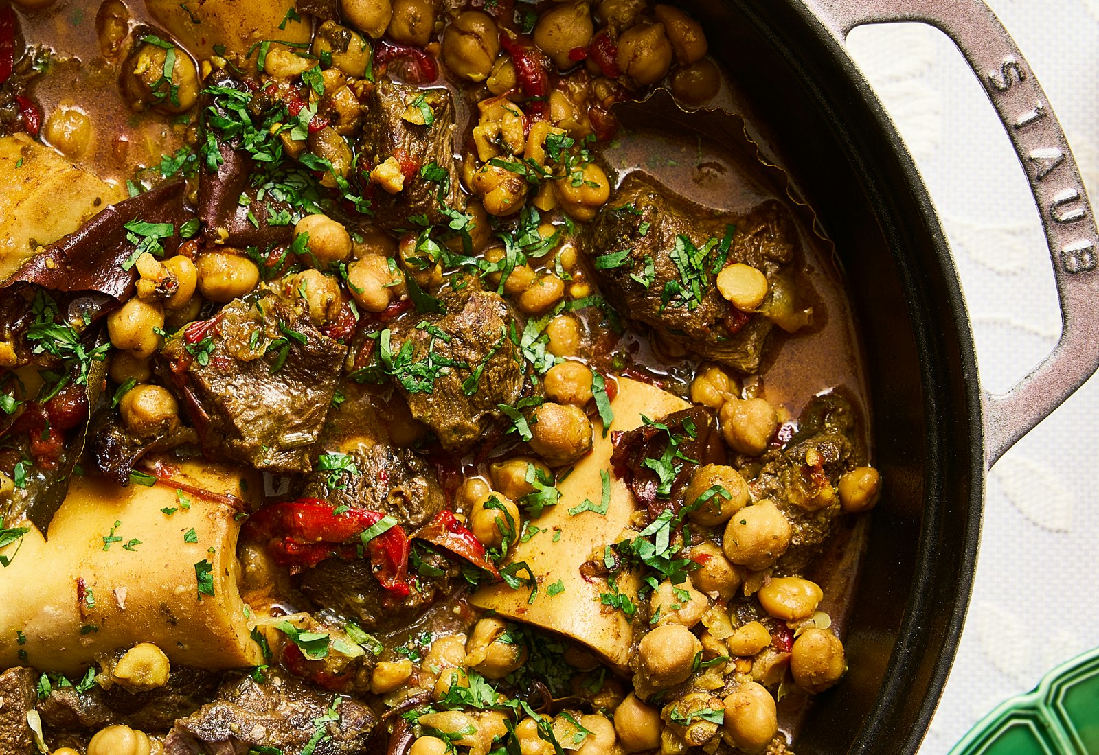 Look for beef cheeks at butcher shops, specialty meat markets, or Latin and Asian grocery stores. The recipe also includes optional marrow bones, which add extra richness; for a lighter version, simply omit them. Dried sweet red peppers, meanwhile, can typically be found at Indian or Middle Eastern grocery stores. If you can’t find them, the recipe will work just fine without them.