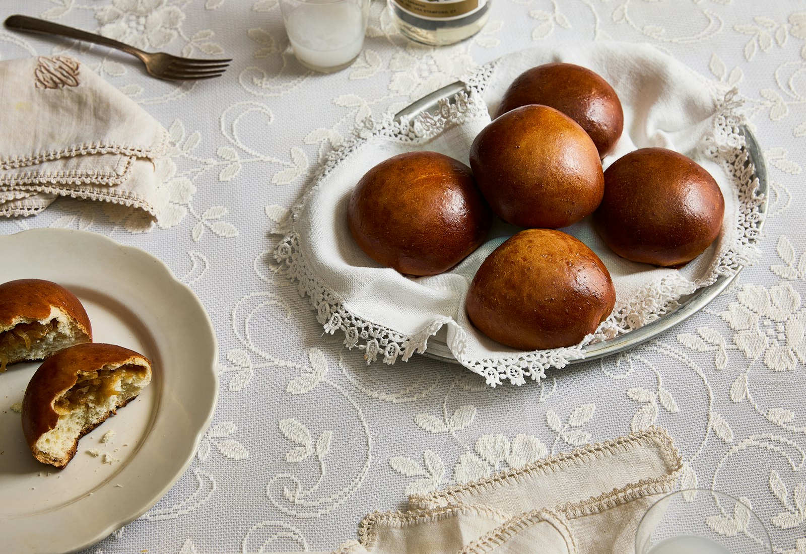 Place the buns on a baking sheet lined with parchment paper, leaving 2 inches between each one. Cover with a kitchen towel and let rise again for 30–40 minutes, until puffy.