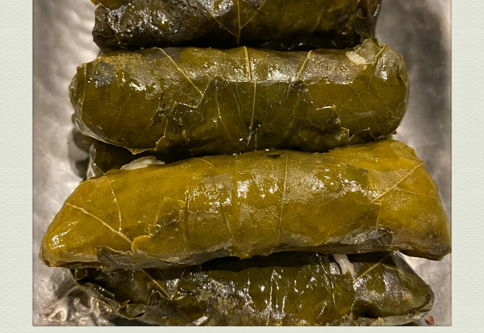 Place the pot over medium-high heat and bring the pot liquids to a boil. Reduce the heat to low heat and place a lid on the pot. Cook the grapleaves on a gentle simmer for about 2 hours until the rice is cooked through and the leaves are tender.