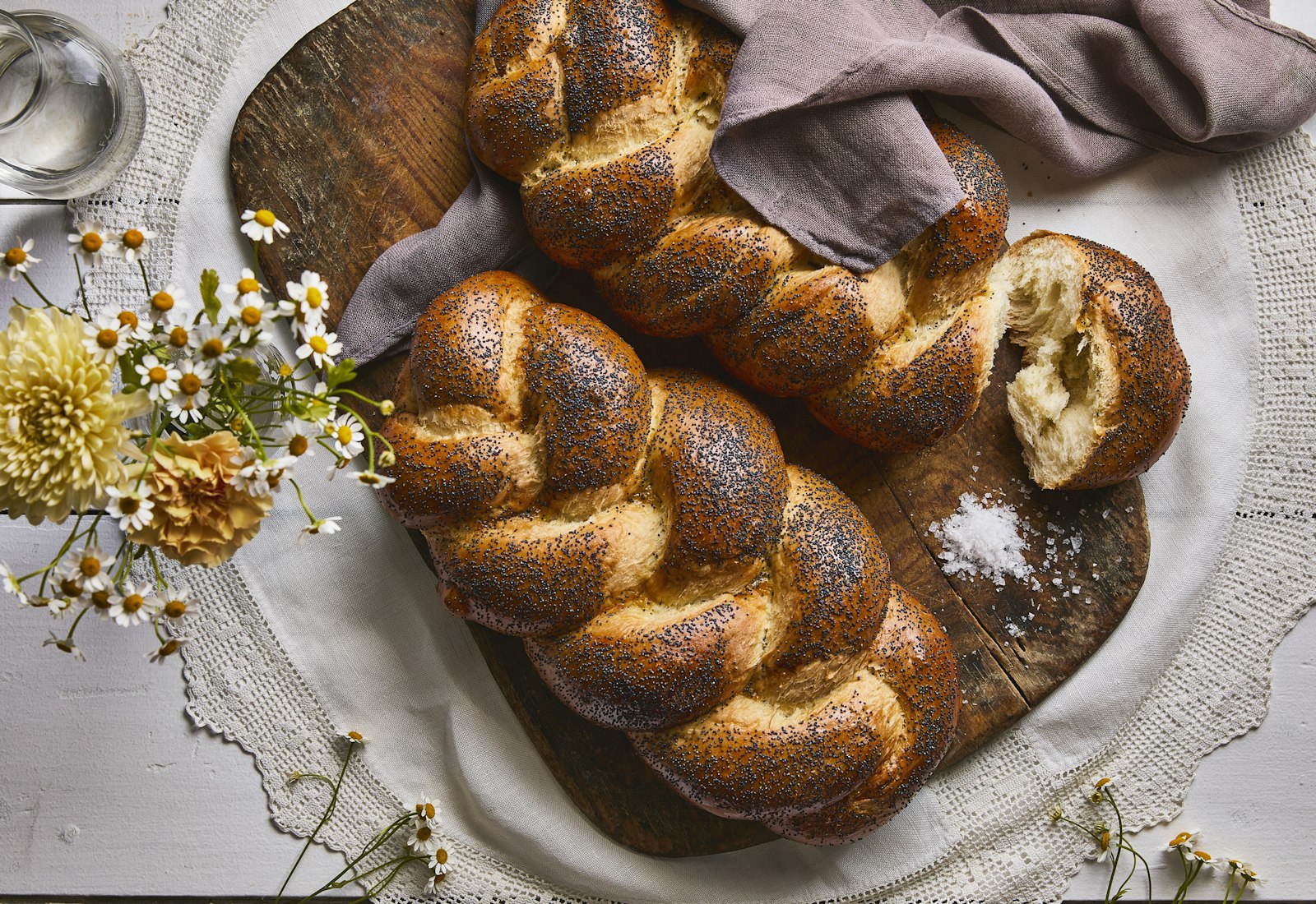 “This recipe lived in our family cooking notebook for decades, passed down from one generation to the next for 40 years now. It is known as ‘the Jewish Buns,’” shares cookbook author Alissa Timoshkina. Her great-grandmother Rosalia made them as pleated round buns or mini challahs. “Here I have tweaked it a little to turn it into the more classic ‘Two Challahs’ recipe for Shabbat,” she adds.