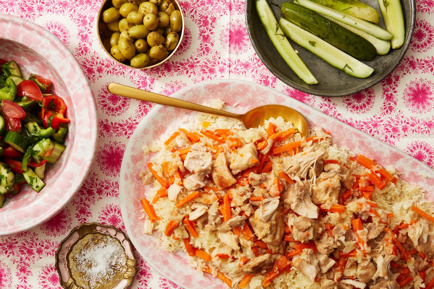 While they were surrounded by Bukharian cooking, neither Ruti nor her mother took to the kitchen, but a few of the recipes managed to be passed down. When Ruti married, her mother-in-law taught her the basics, but it was her mother who taught her the family plov recipe (which the Merom’s pronounce “plow”). In Uzbekistan, the grandmothers made it with lamb, but in Israel, her mother made it with beef and Ruti makes it with chicken or turkey. A piece of meat, rice, and carrots should fit into each spoonful for the perfect bite, she explains.