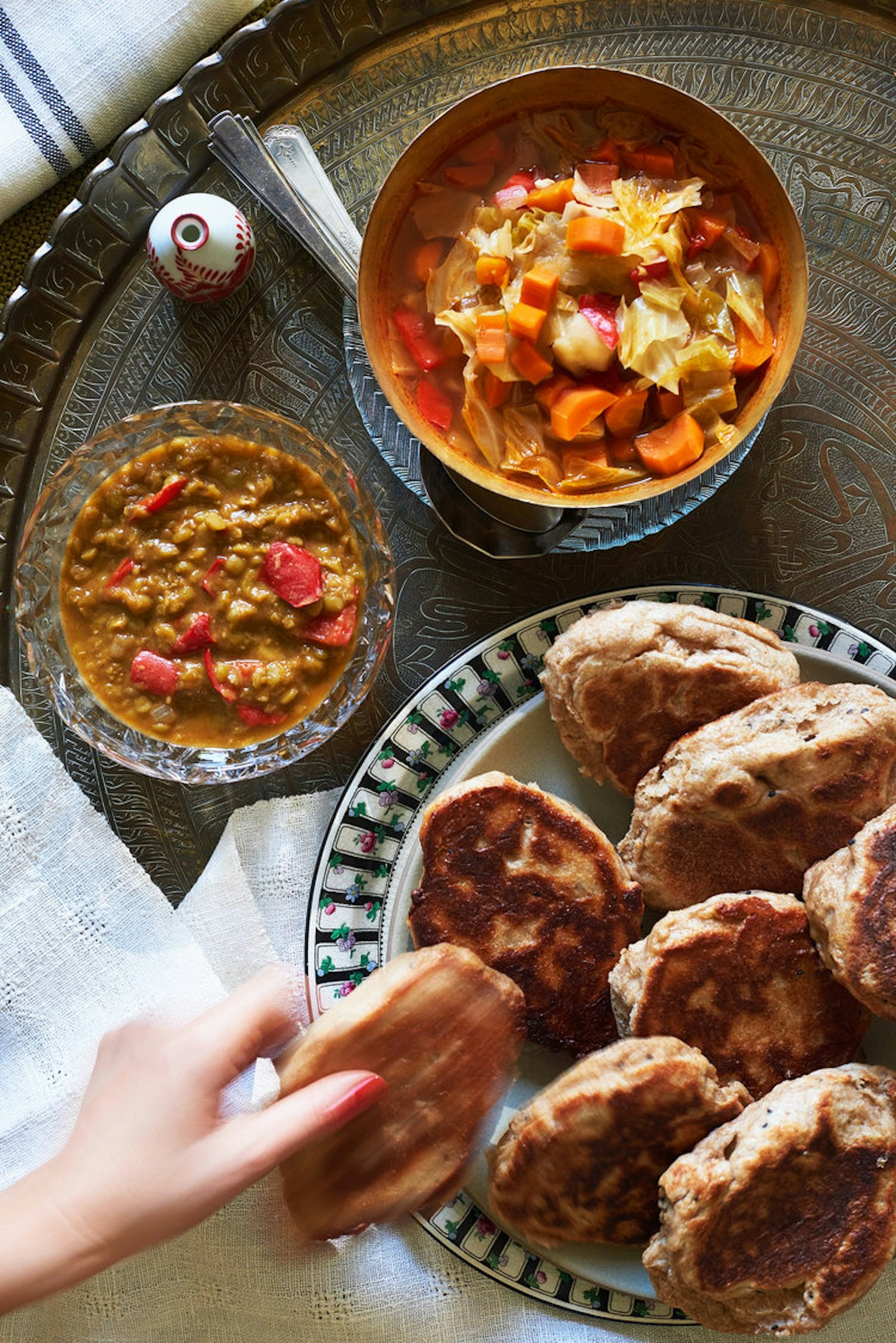 They lived together in an absorption center in Atlit, a town along the water in Haifa. It was here that Yafit started to learn to cook, shadowing her aunt’s every move much like she had when she braided hair in their village. Yafit learned to make injera, the staple bread of the Ethiopian community that doubles as utensil, plunged into vegetable dips like the ones below. She also learned to make dabo, which functions much like challah in the Ethiopian Jewish community, at times cooked over a low heat overnight so it’s fresh for a Saturday meal. When Yafit left to attend boarding school near Tiberias and later joined the Israeli army, she remained close with aunt Ilana, returning to live with her in Afula as a young adult, mastering more recipes.
