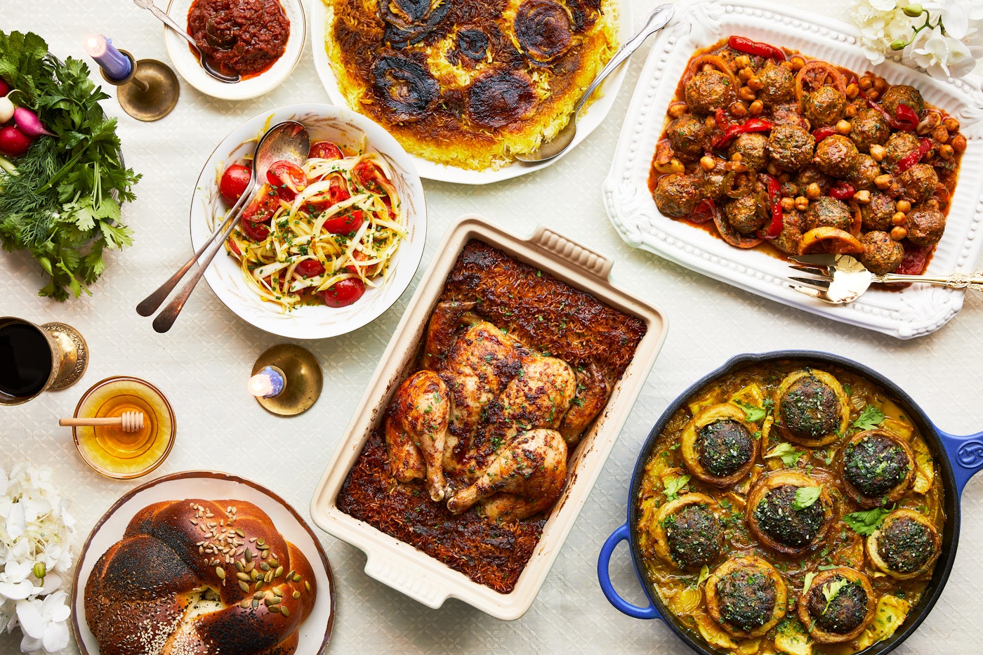 The menu she shared with us for Rosh Hashanah reflects just that. There’s her grandfather Yechezkel’s simple and vibrant tomato and onion salad dressed with amba, crispy rice with onions that her father Kaduri taught her to make, her mother’s beef-stuffed artichoke hearts, and Moroccan fish patties inspired by her husband Yossi’s family. Ruhama also shared her own interpretation of the iconic Iraqi Shabbat chicken and rice dish t’bit that her mom made for every special event, plus her family’s baklava cigars with cardamom and orange blossom water.