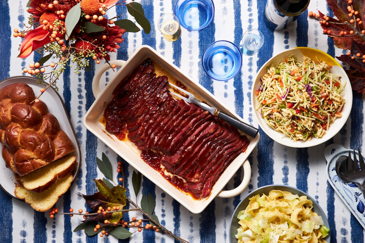 Over the years, as Michael moved to New York, and his sister and parents relocated to Florida, the recipe traveled with them. Unable to gather together for many of the Jewish holidays, the barbecued corned beef, and the cabbage and noodles became a post-Thanksgiving Shabbat tradition, often served with a broccoli slaw and his sister’s homemade challah. “Our Thanksgiving is lovely and wonderful and delicious, but nothing out of the ordinary,” Michael says. “But every Friday night, this is also our Thanksgiving tradition regardless of where we are.”