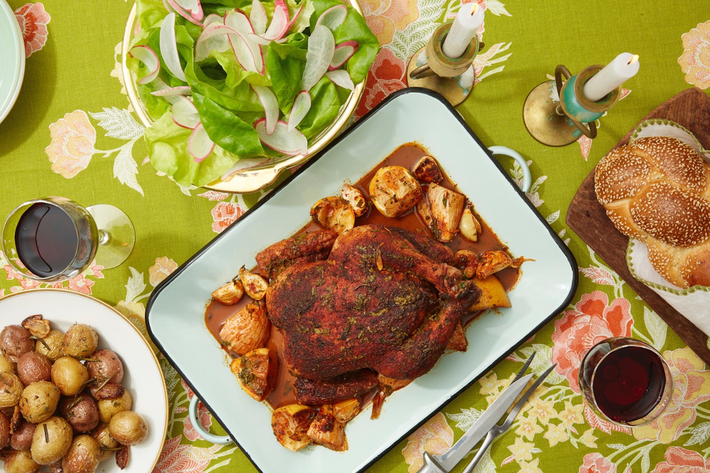 Today, her sons are in their 30s but she still makes this chicken along with fresh challah and rosemary potatoes when they come home for Shabbat dinner — well, two chickens. “One for shabbat and one for the weekend,” she adds. “It’s really good sliced cold.”
