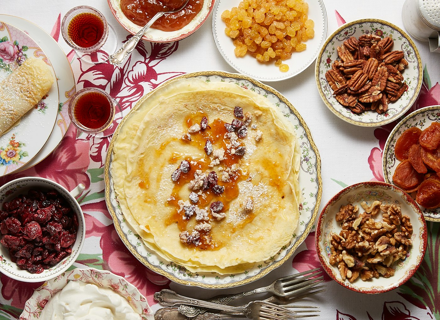 Agi put out the dessert on her long, white tablecloth with her floral china at family dinners. And, “when my parents would go out for a date night they’d drop us off at my grandparents’ house…. She’d put out a huge dessert display for me and my brother….two different kinds of babka, Entenmann's,” and, of course, palacsinta, Jeremy says. “She was playing up the grandma card hardcore.”