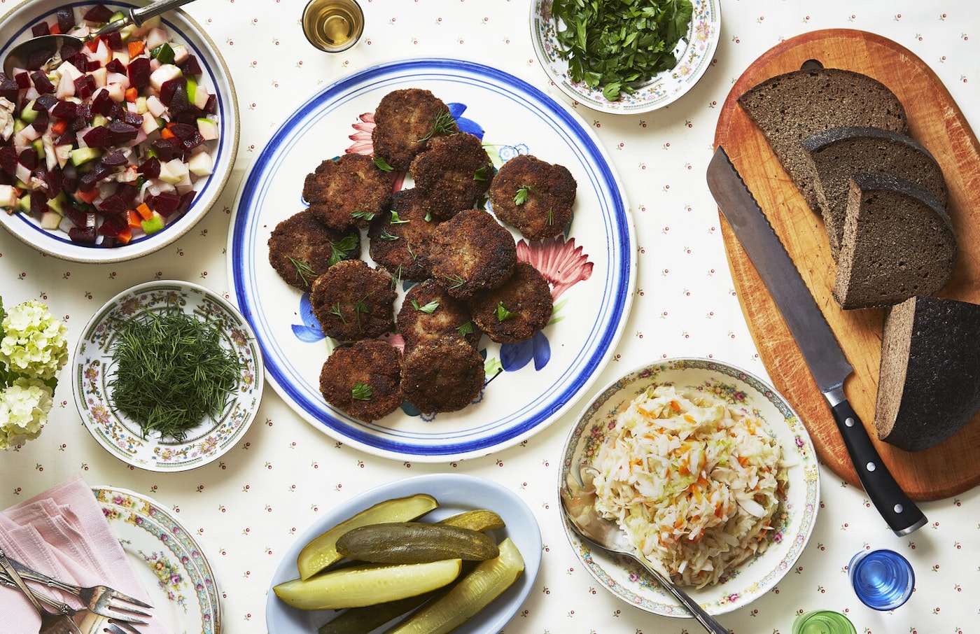 Few Jewish recipes were part of the family repertoire by the time she was born in 1986. The staples that defined their family kitchen were Soviet and Russian. There was sour cabbage fermented at home, a chopped salad of cucumbers, potatoes, apples and beets called vinaigrette, soups like borscht, plov (a rice dish from Central Asia), and always biskvit. Elena’s cooking was influenced mostly by her mother, but also by recipes she exchanged on note cards with friends and “The Book of Tasty and Healthy Food,” a cookbook published by the Soviet government aimed at creating a national cuisine.