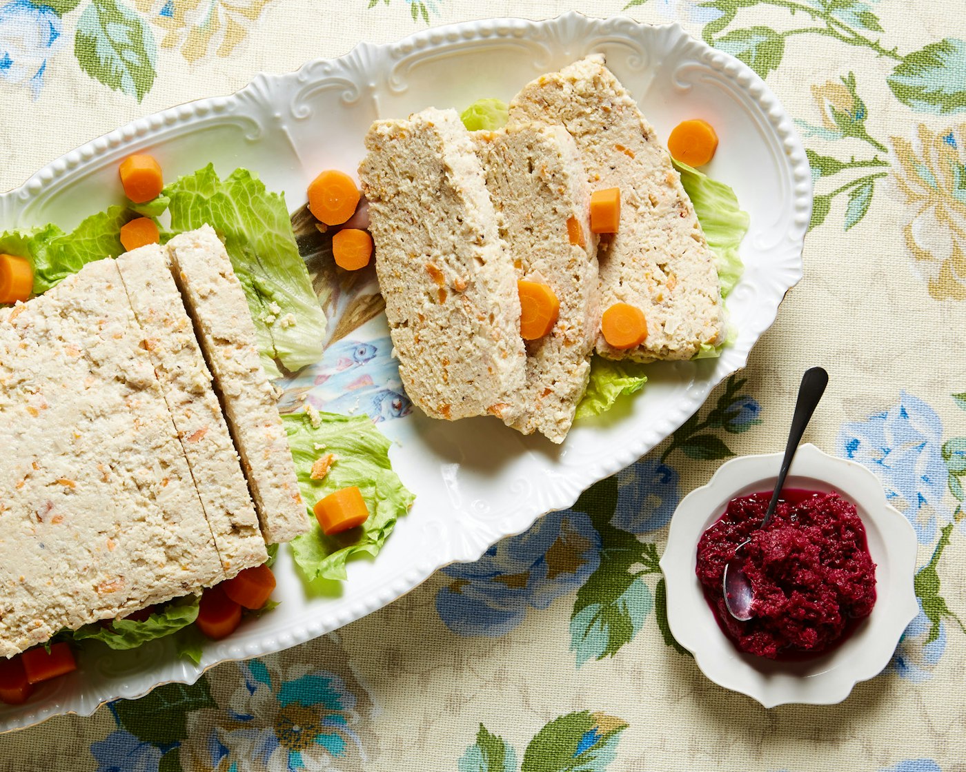 Evelyn dictated the instructions, including her own twist on Nettie’s recipe, cooking it in a fish poacher in a loaf shape, so the gefilte could be served in elegant slices instead of crude balls. That year, Patti made the gefilte fish and brought it to her mother in the hospital. “She was satisfied that we had done a fairly good job,” Patti says. In the years that followed, Evelyn continued to make the fish until the last few years of her life.
